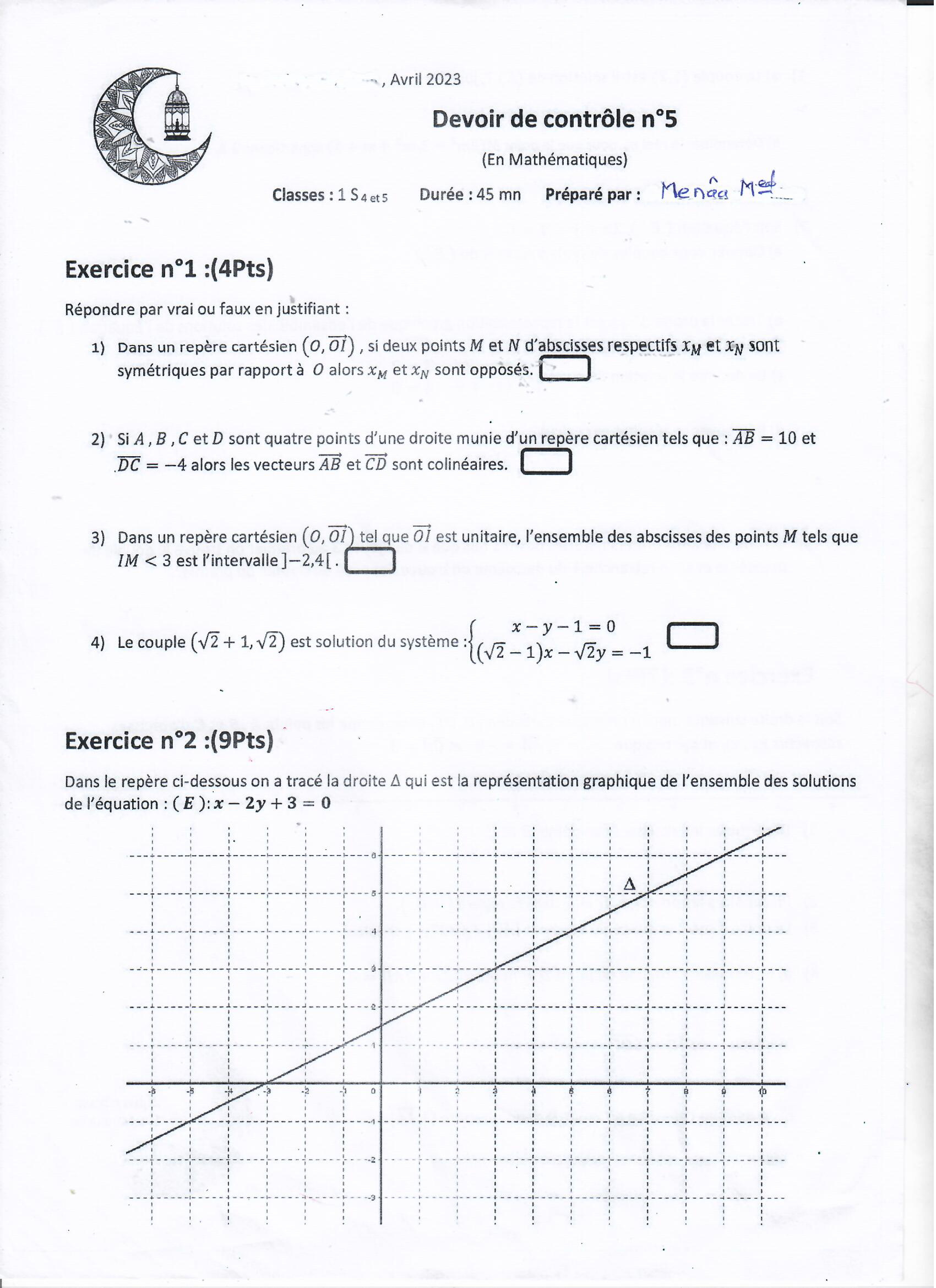 Devoir de contrôle n°6math