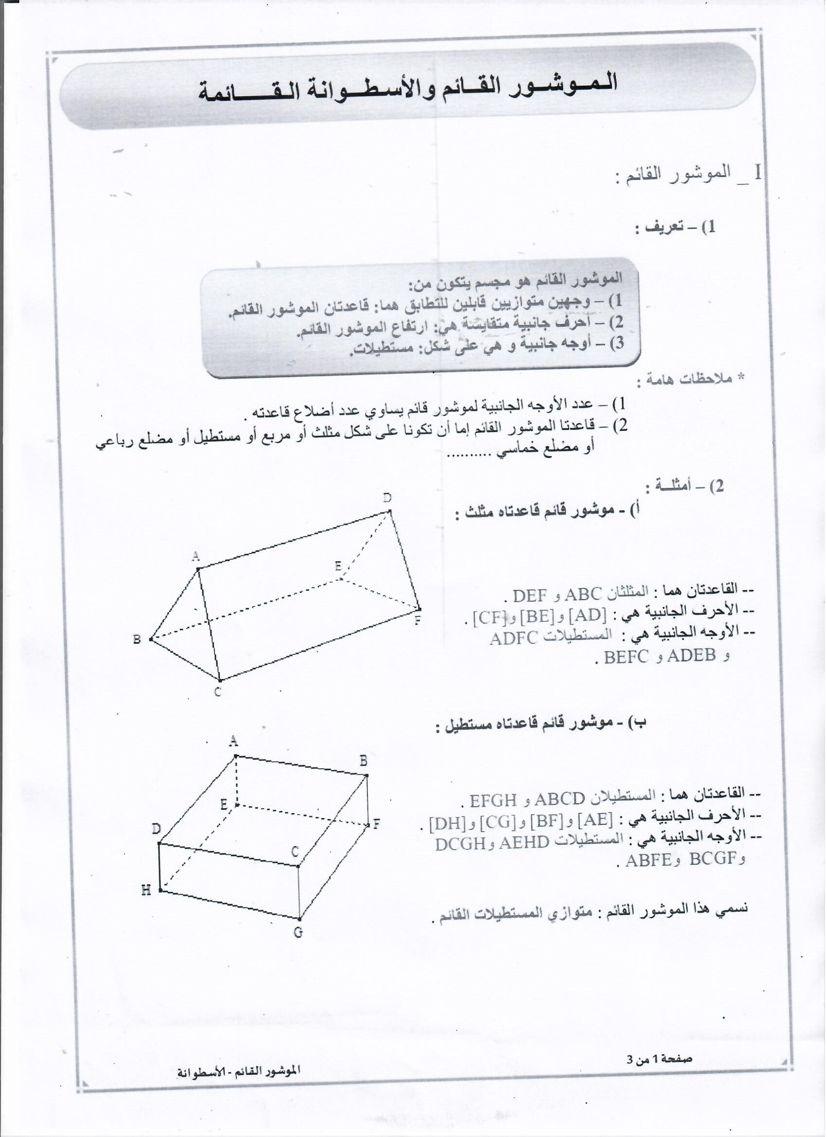 رياضيات الثلاثي 1 السنة 3