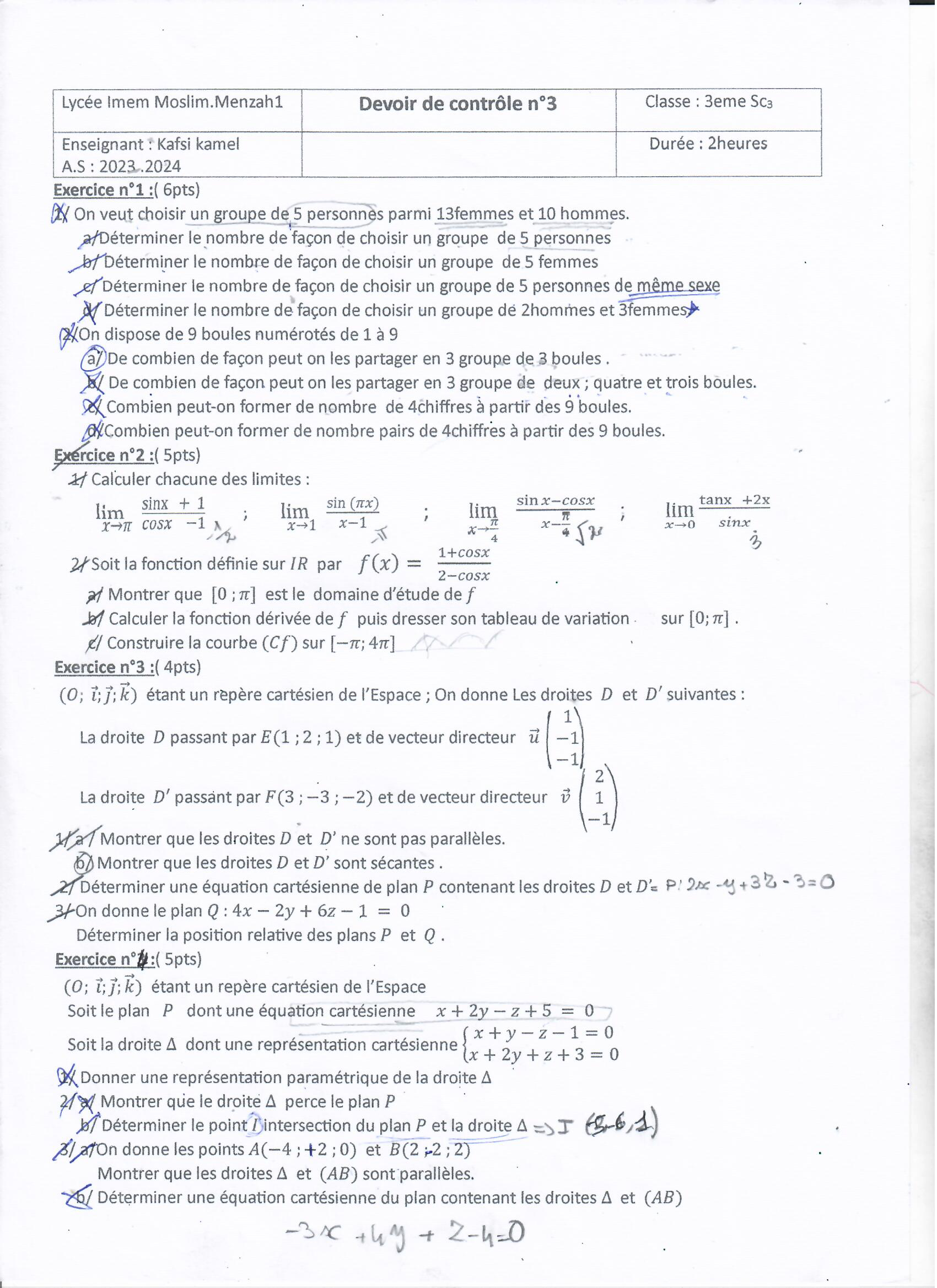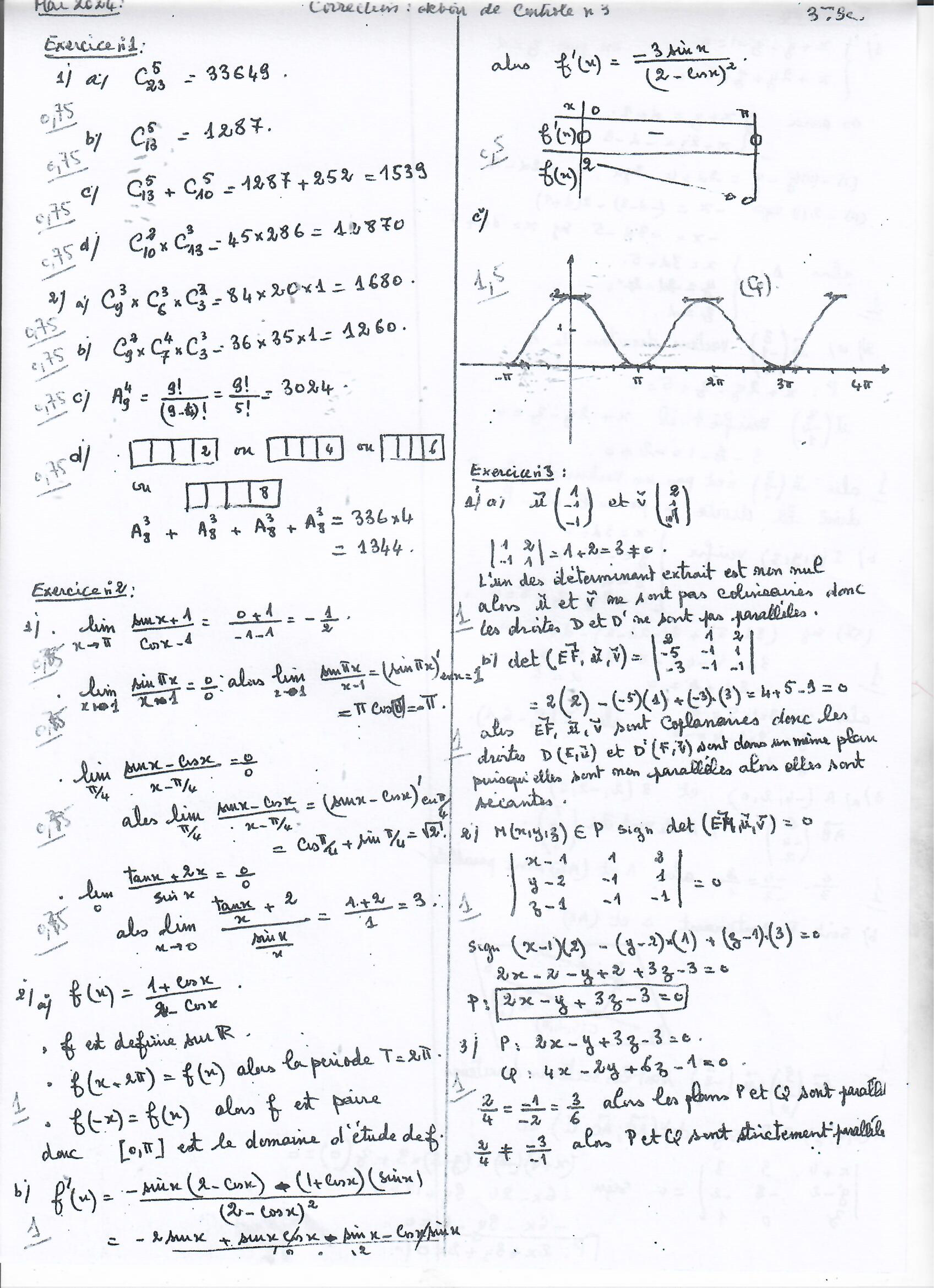 3SC Devoir de contrôle1 Math Correction