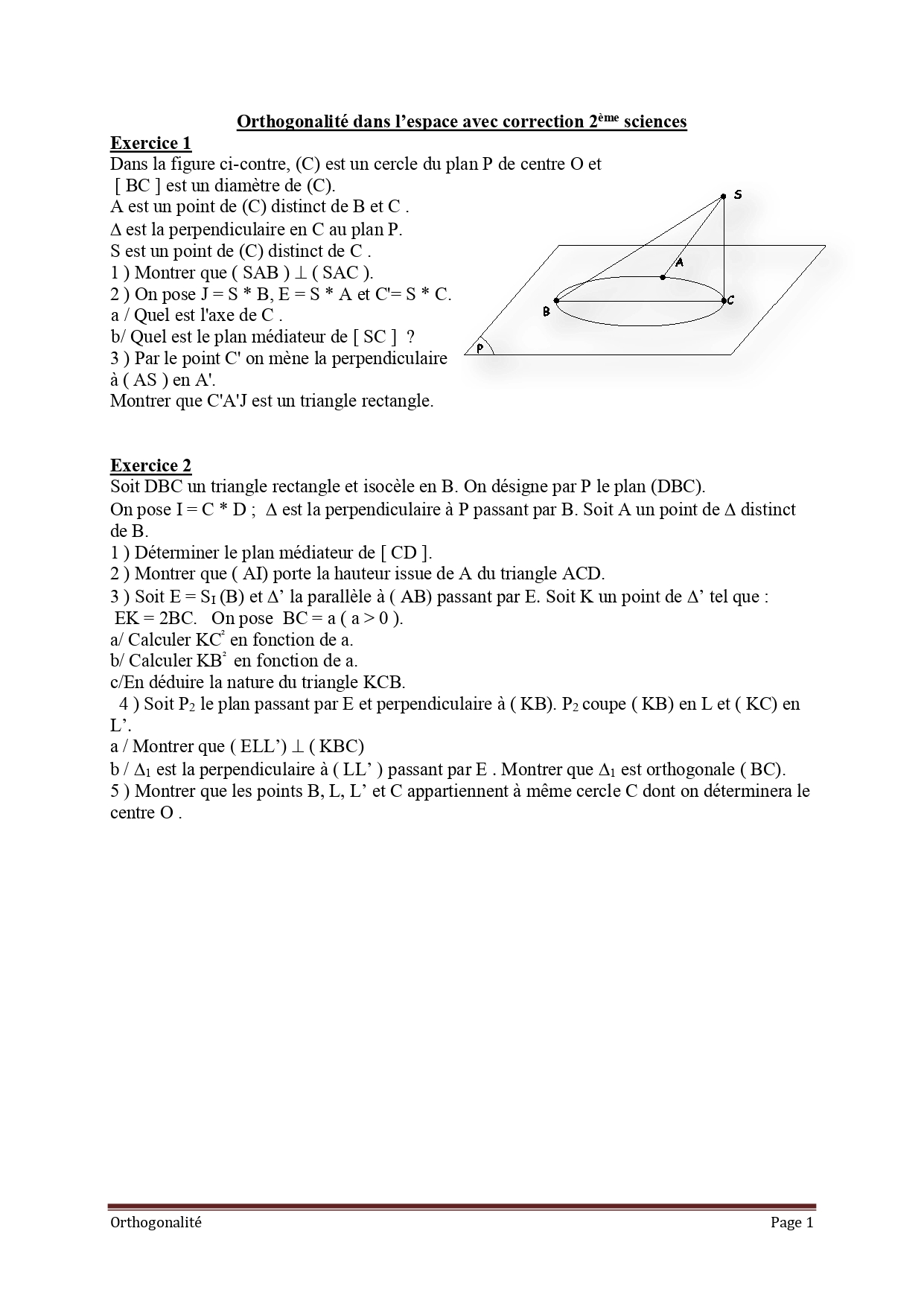 geométrie dans l'espace 2ème