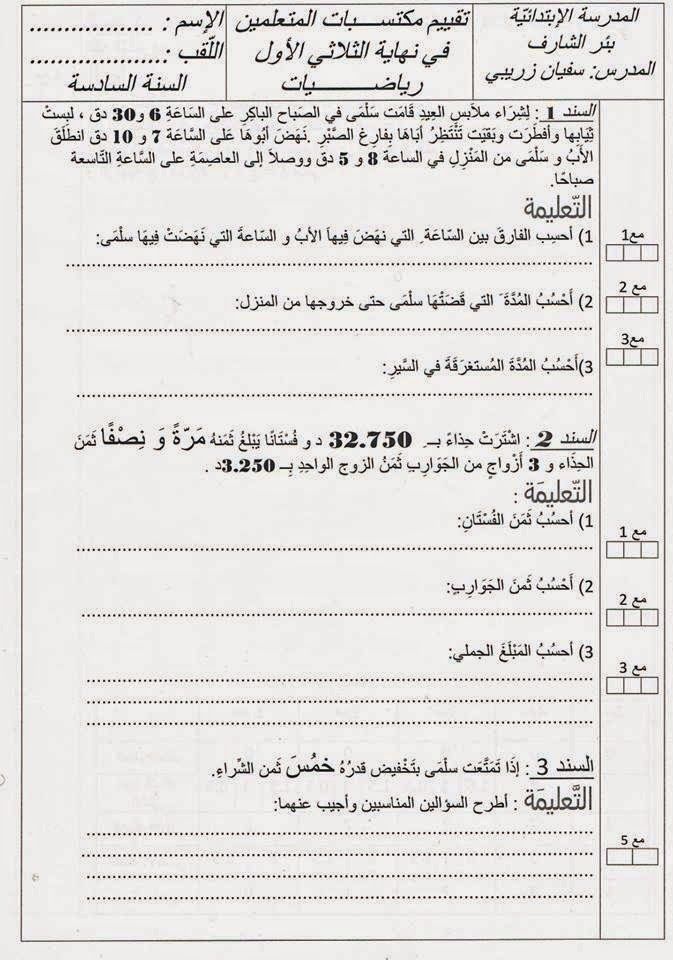 تقييم مدنية ثلاثي 3 سنة خامسة