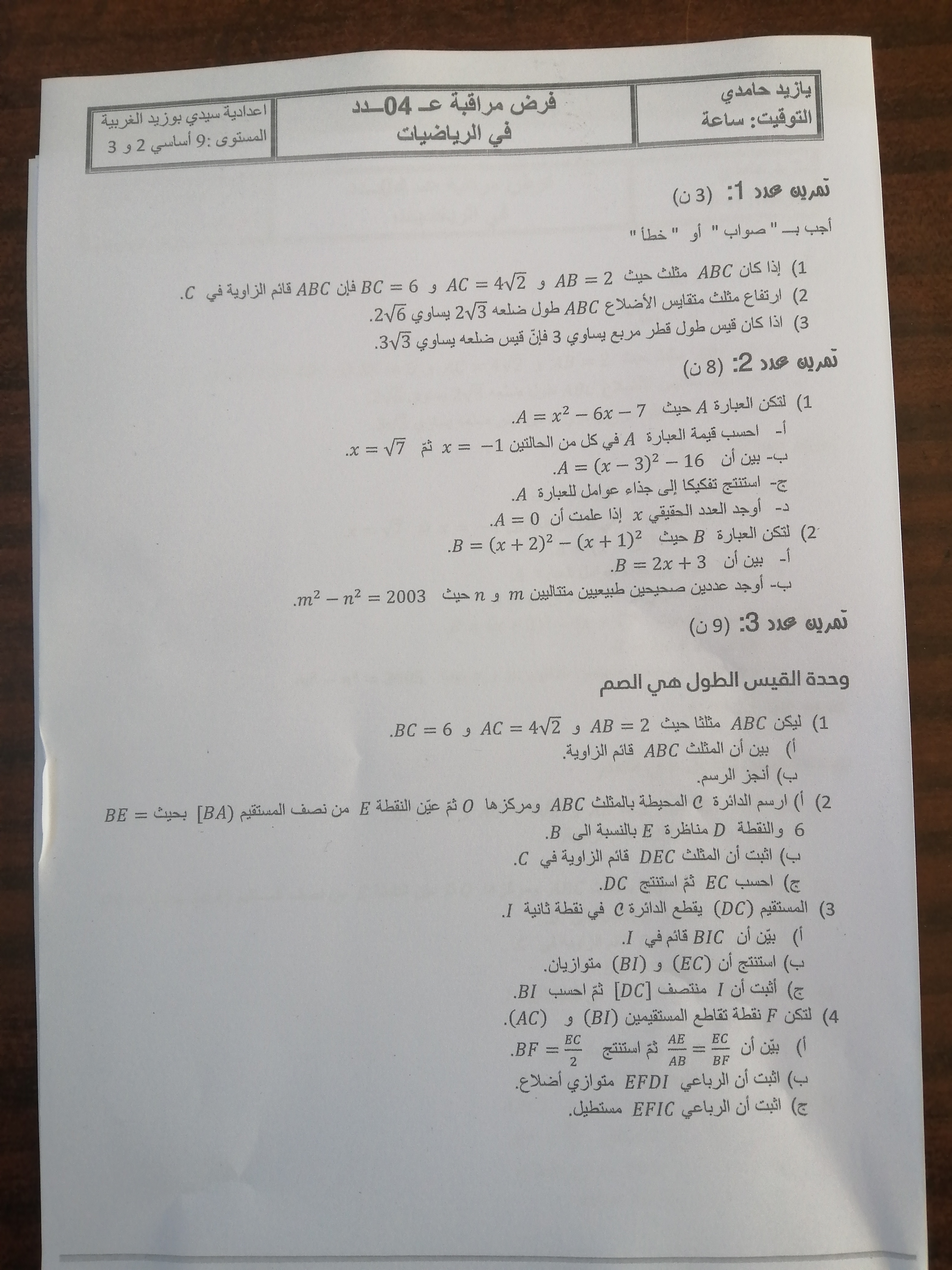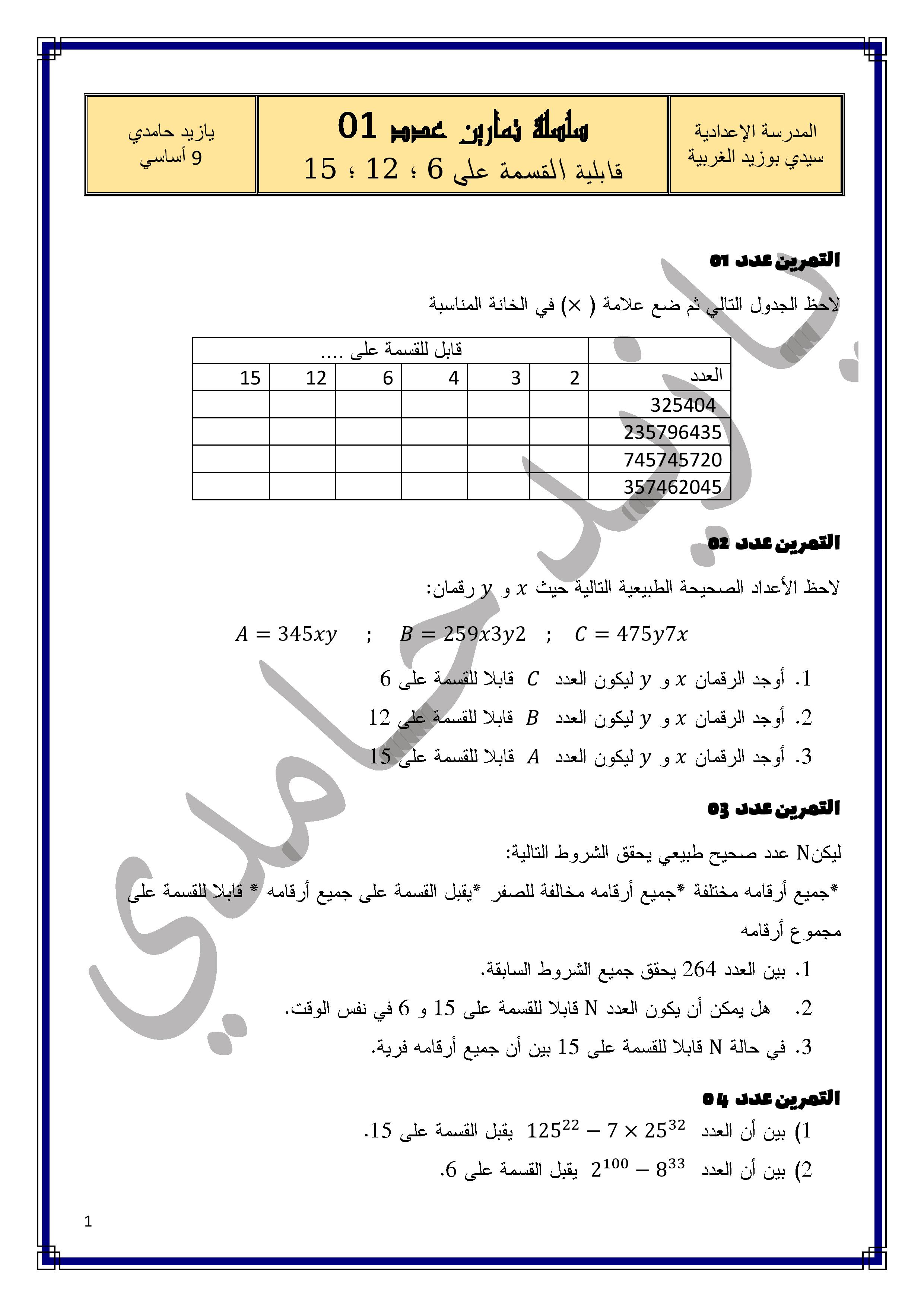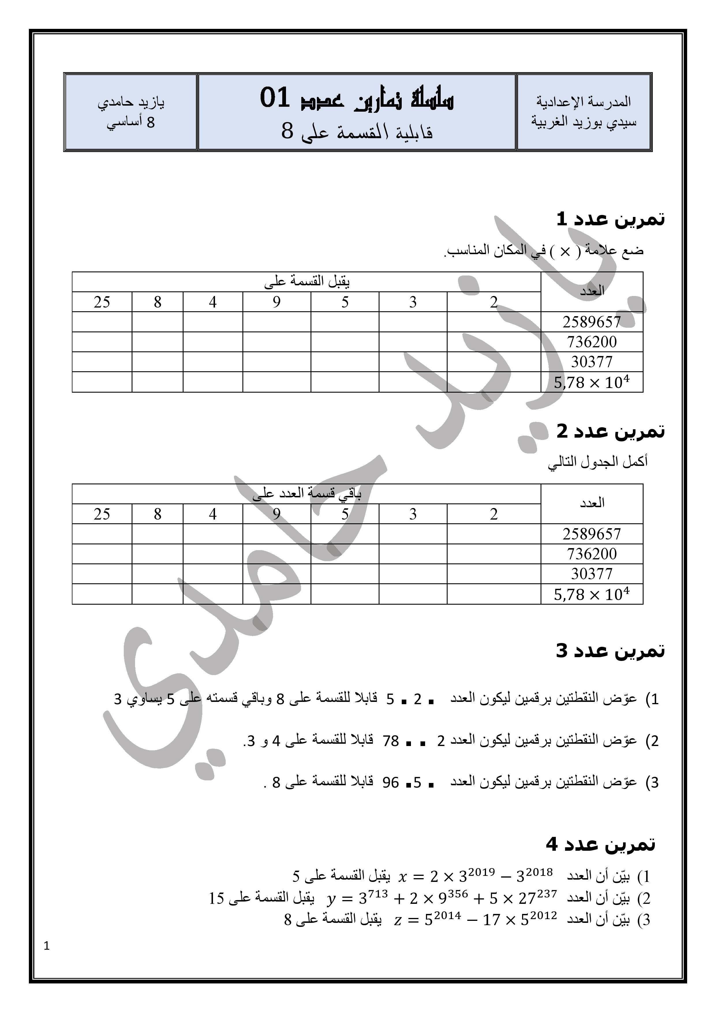 سلسلة تمارين 8 أساسي