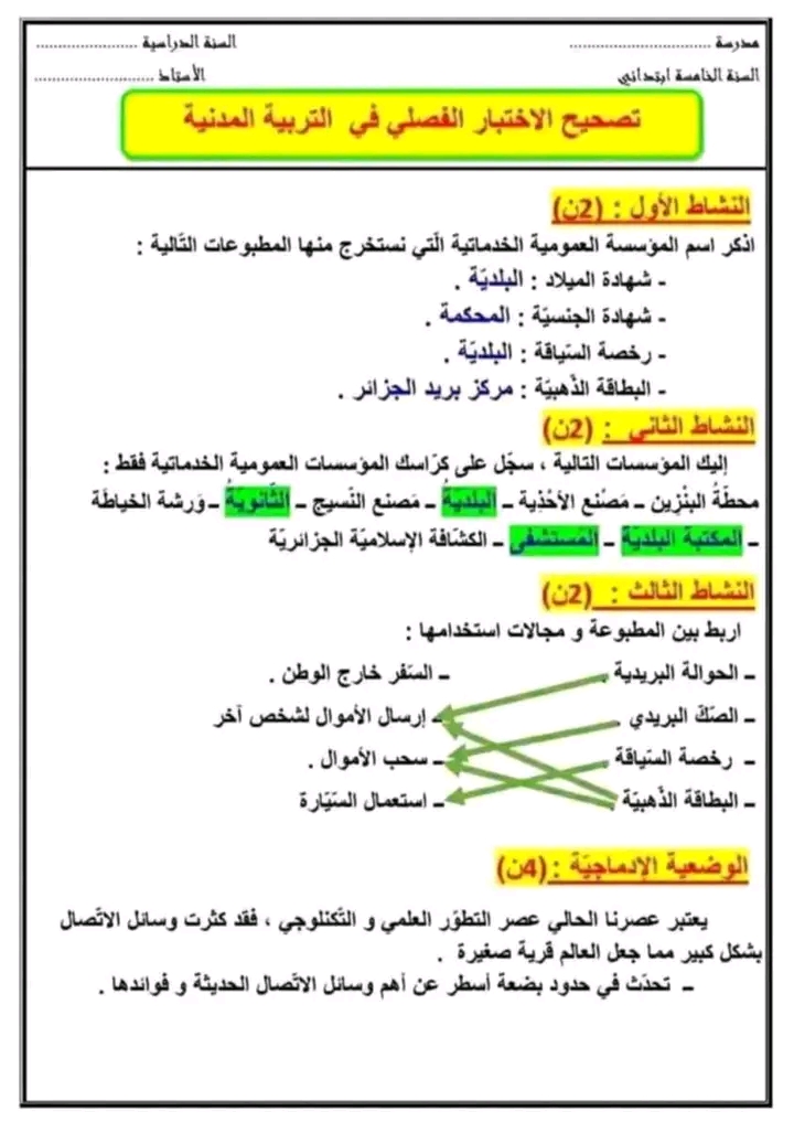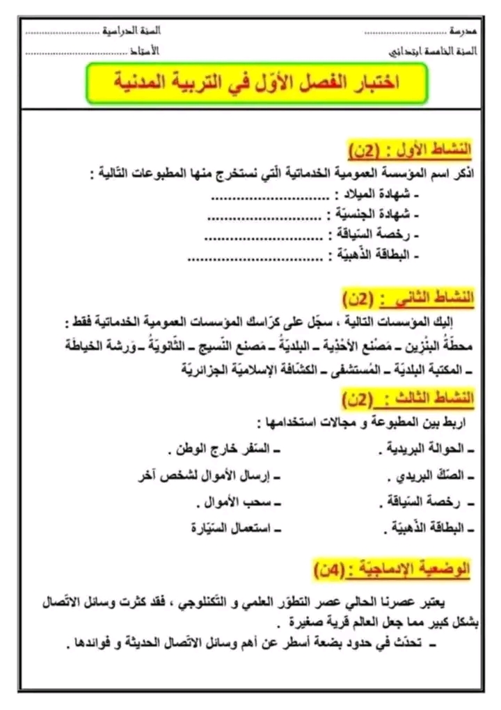 تاريخ +جغرافيا +تربية مدنية +قواعد لغة