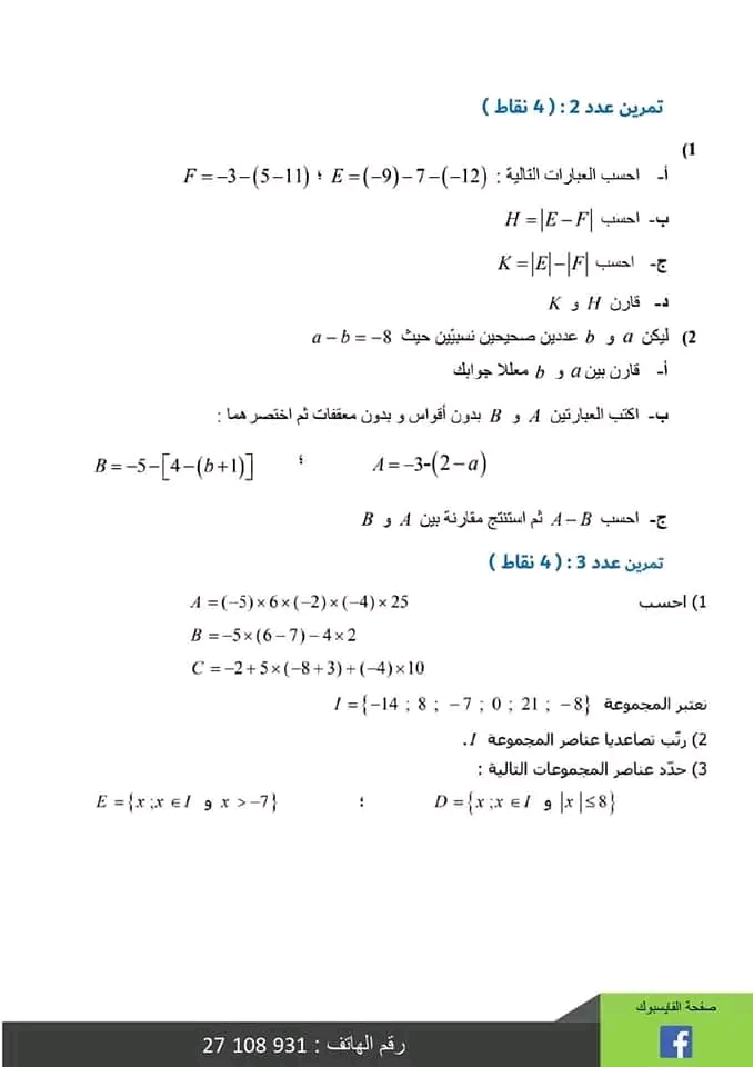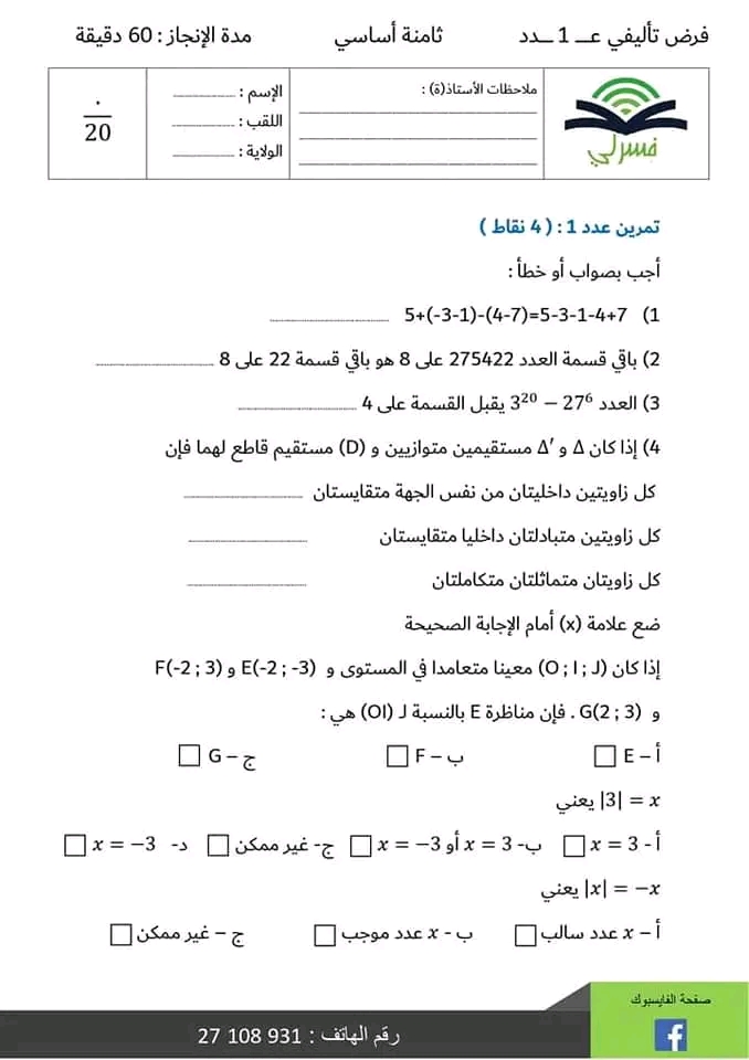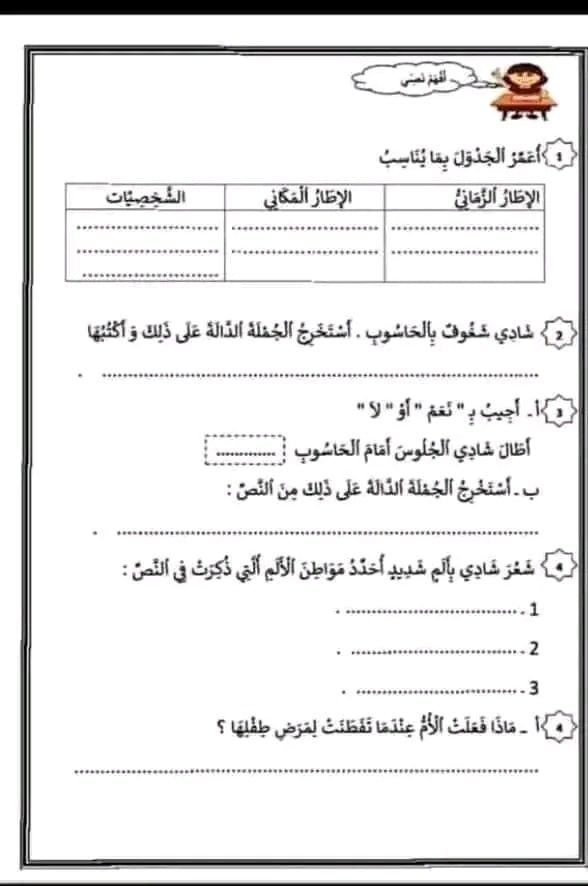 اختبار الثلاثي الثاني قراءة
