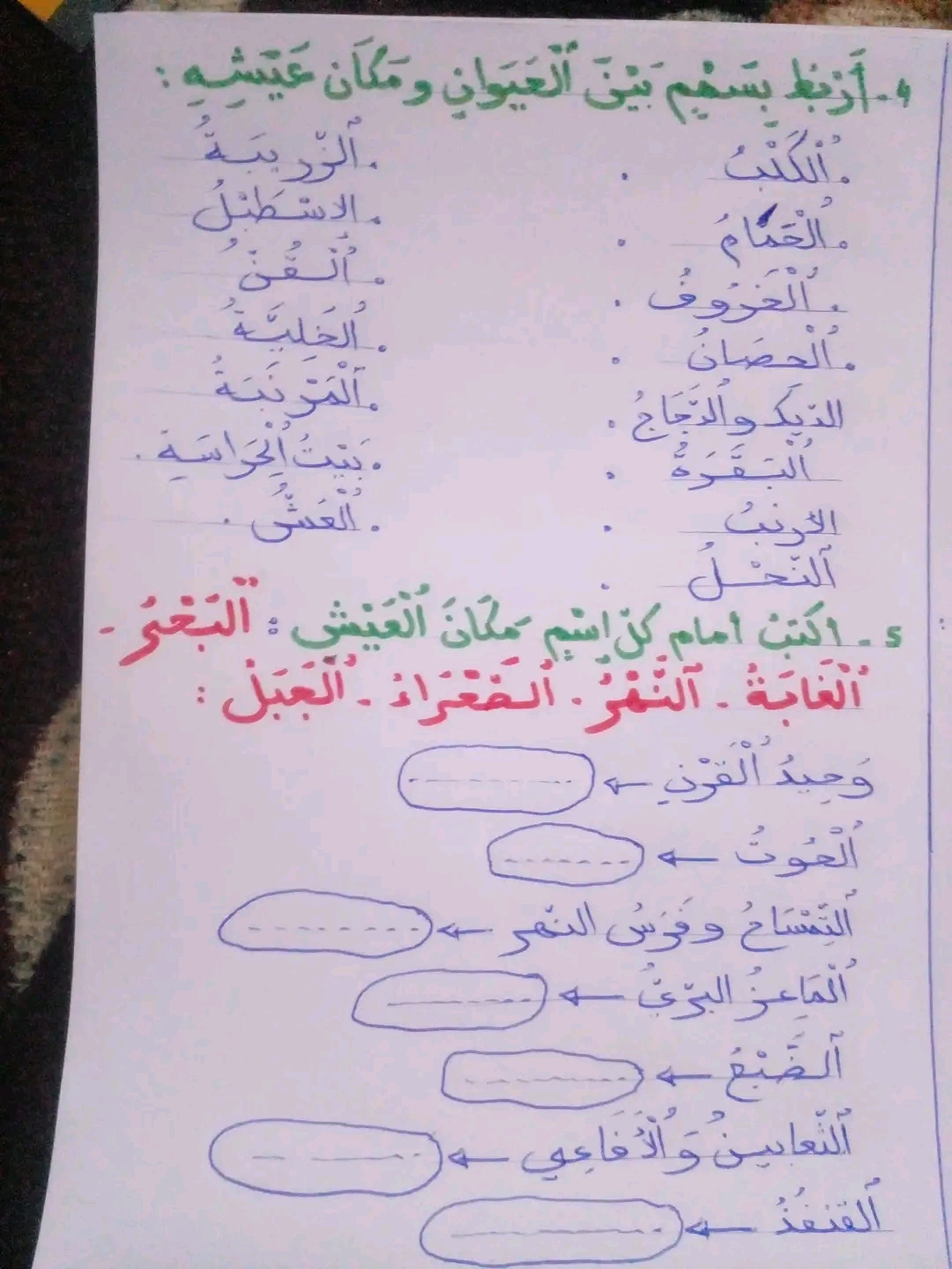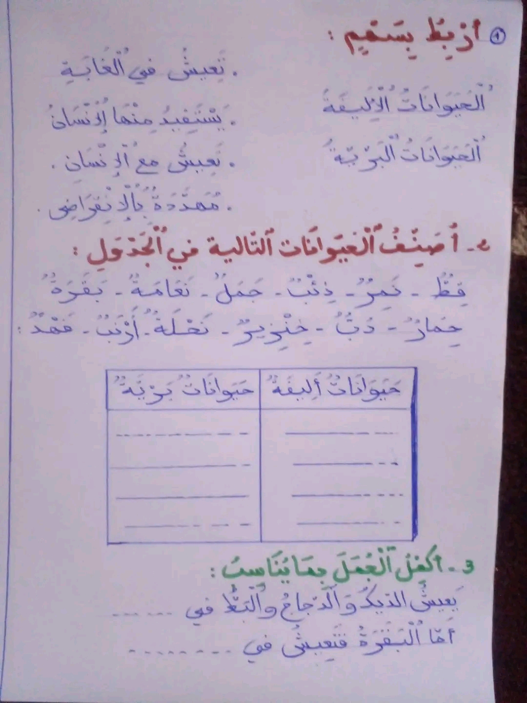 الحيوانات الأليفة والبرية وأماكن عيشها